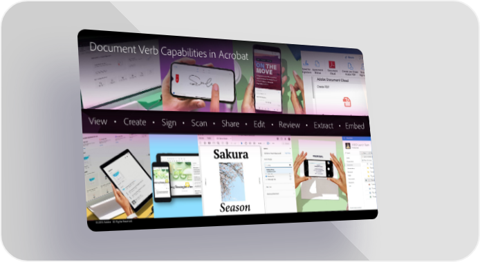 Document Verb Capabilities in Acrobat View . Create . Sign . Scan . Share . Edit . Review . Extract . Embed © 2019 Adobe. All Rights Reserved.