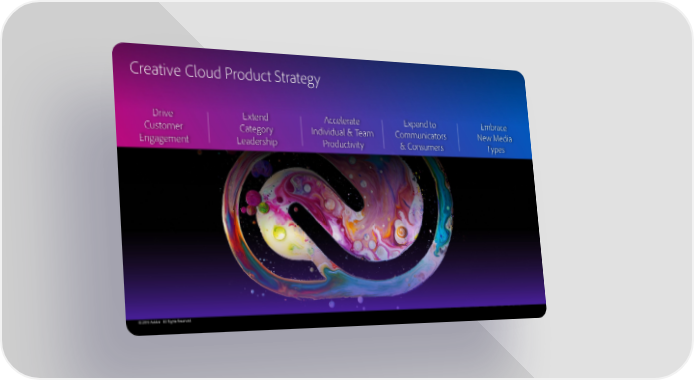 Creative Cloud Product Strategy Drive Extend Accelerate Expand to Embrace Customer Category Individual & Team Communicators New Media Engagement Leadership Productivity & Consumers Types © 2019 Adobe. All Rights Reserved.