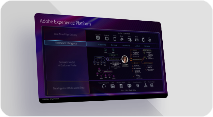 Adobe Experience Platform Unified Experiences Video/TV Desktop Mobile Social Web Email Kiosk IoT Experience Intelligence Customer.ai Journey.ai Attribution.ai Leads.ai Content.ai DESKTOP ADOBE PRODUCTS Desktop Open Creative Cloud Premiere Rush CC Mobile Desktop App iOS Login with Adobe ID Premiere Rush CC DEVICES Single App Plan Install Premiere Rush Creative Cloud IDENTITIES Desktop Premiere Rush CC CUSTOMER PROFILE EXPERIENCE EVENTS ECI UUID CRM EMAIL NNAAMME: SE: Saarraahh R Roossee D ID EMEMAAIILL: : ss..gg..rrososee@@ououttllookook..ccomom MOBILE CROSS-CHANNEL 4647729… 46378701… YAuPQ1K… srose@ GGENENDDERER: F: Feemmaallee CUSTOMER outlook.com AAGGE: 3E: 333 Sarah Rose Visit Adobe.com “Upgrade Premiere CCOOUUNTNTRRYY:: U Unniitetedd S Statatetess Scrolling on Instagram Rush” MMOROREE…… Opened, Clicked Install Premiere Rush CC “Thank You for Renewing” Followed Create Adobe ID Opened, Clicked Guide SEGMENTATION App Guided Tour Name Your Project Add Media Web Edit Sequence Creator Social In-app Offer Paid User Download Completed Purchase Customer Support CRM Inventory Mgmt. POS Store Operations ERP Custom Apps Front Office | Back Office © 2019 Adobe. All Rights Reserved.