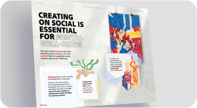 ADOBE CREATORS IN THE CREATOR ECONOMY EXECUTIVE SUMMARY CREATING ON SOCIAL IS ESSENTIAL MENTAL FOR WELL-BEING The more creators post and the more time they spend creating—the more positive they feel especially among business owners and influencers. For creators, and especially in昀氀uencers, using or creating social content is even ranked as a top necessity for mental health (47% of in昀氀uencers). Clinical research has tied social media use with depression among adults. However, in the case of creators Creating social who 昀椀nd and derive pleasure from content on the sharing their work, there is an inverse daily is just as relationship with social media. 吀栀e much of a driver more time spent creating and for happiness as posting social content, the higher making money. the reported positivity. 9