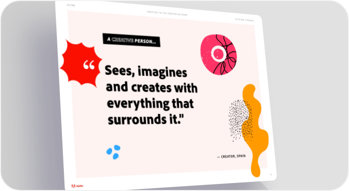 Adobe - Future of Creativity Study Page 12 Page 14ADOBE CREATORS IN THE CREATOR ECONOMY DETAILED FINDINGS A CREATIVE PERSON... “ Sees, imagines and creates with everything that surrounds it.” — CREATOR, SPAIN 13